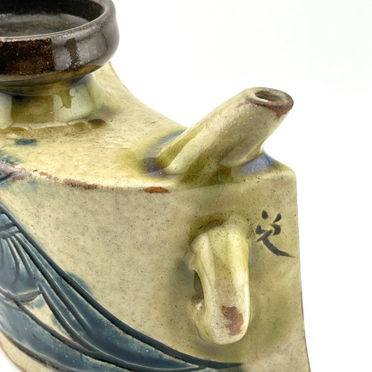 壺屋焼 人間国宝 金城次郎作 魚文抱瓶(笑う魚)