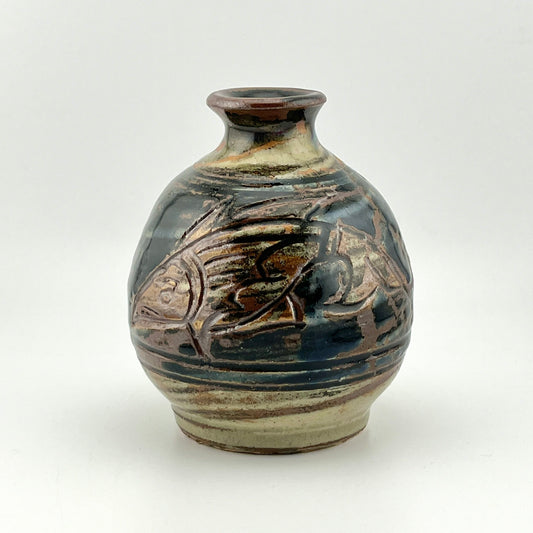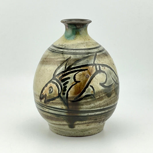 壺屋焼 人間国宝 金城次郎作 魚文丸徳利 (笑う魚)