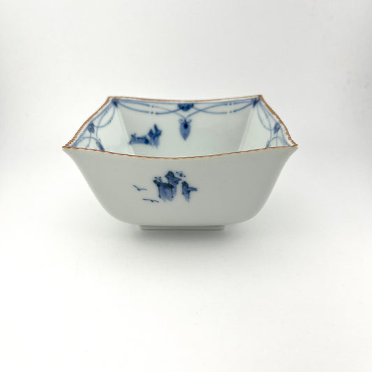 売り切れ有田焼 貴祥窯 染付見込山水角小鉢