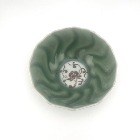 有田焼 貴祥窯 染付草花緑渕3.5寸皿