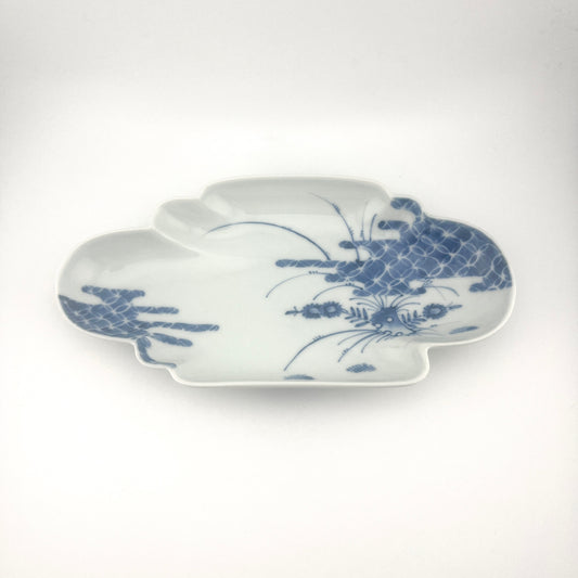 有田焼 貴祥窯 墨弾七宝雲型長皿