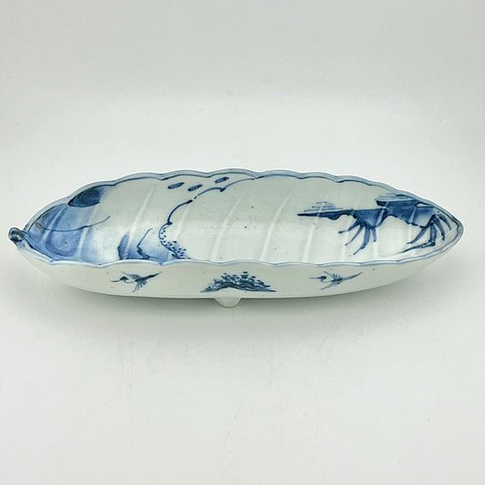 有田焼 貴祥窯 染付葉型鳥文付出皿