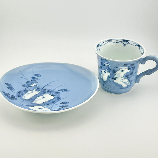 売り切れ有田焼 貴祥窯 ルリ釉鷺文碗皿