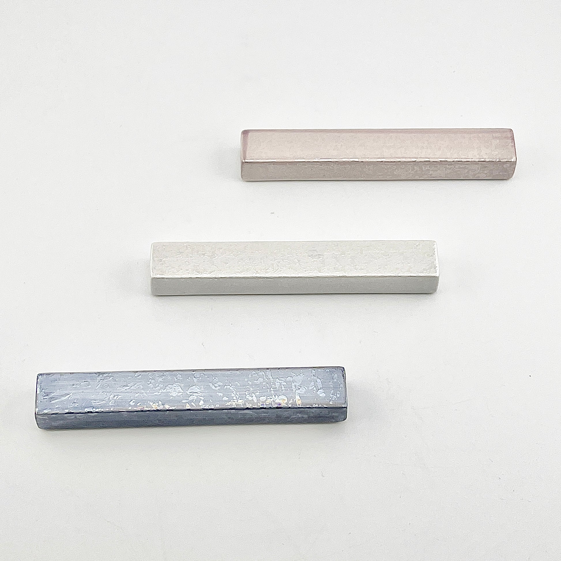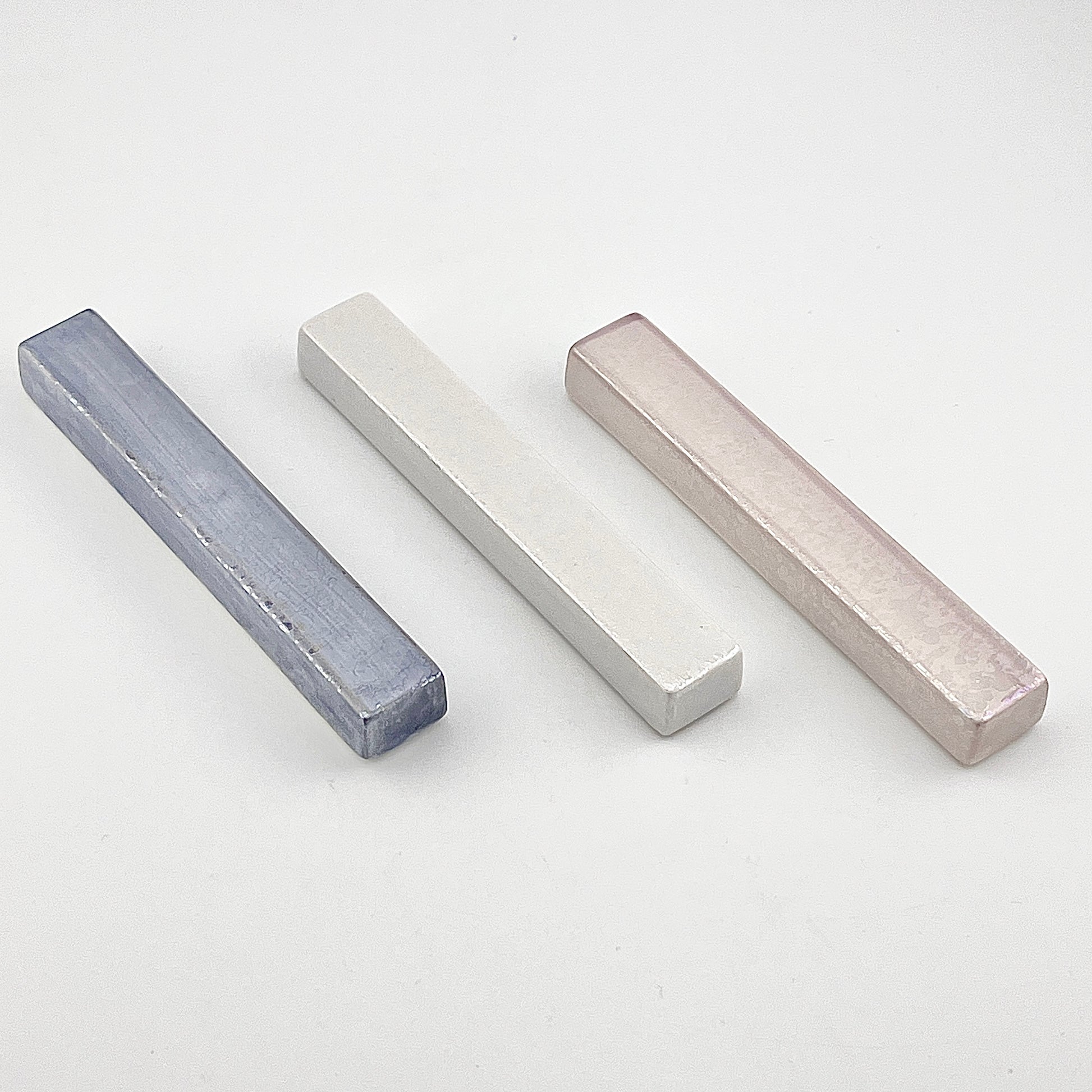 ラスターグレー・ラスターピンク・パールホワイト共に、箔がかかったような輝きが特徴です。