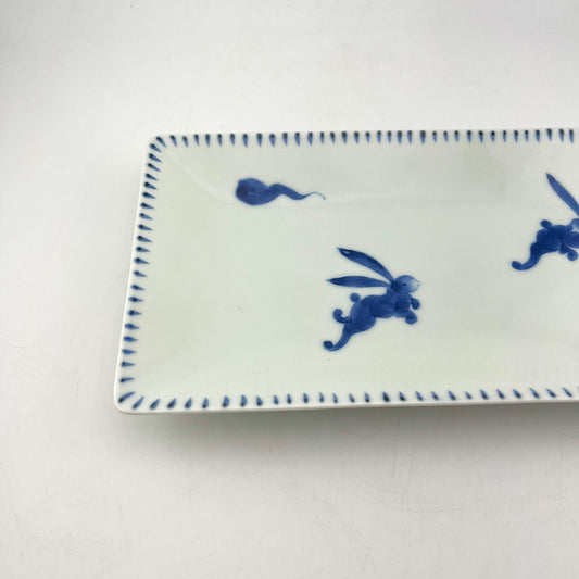 有田焼 そうた窯 惣太窯 染付はね兎S字長角皿