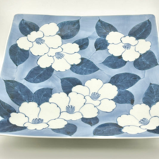 有田焼 惣太窯 染付椿絵正角寸皿