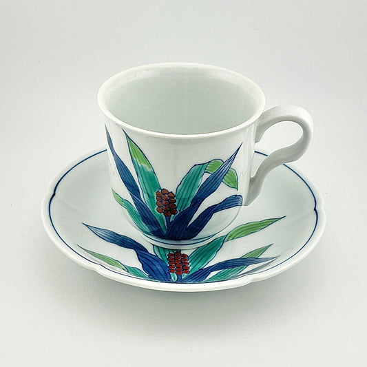 有田焼 舘源窯 舘林喜助作 染錦万年青朝杯