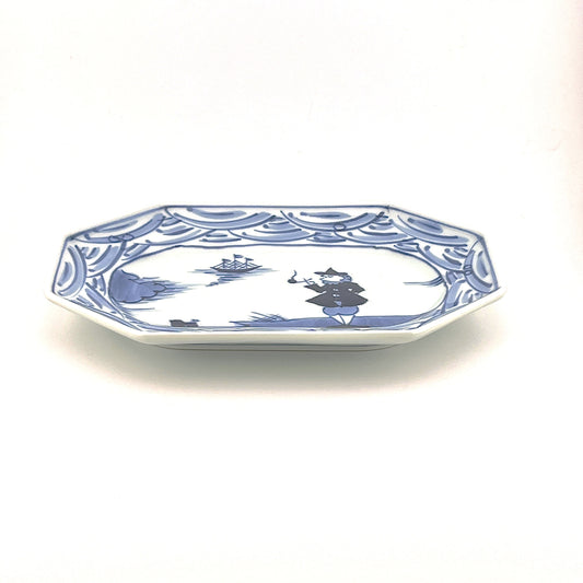 有田焼 青花 しん窯 長崎紋 八角長角皿