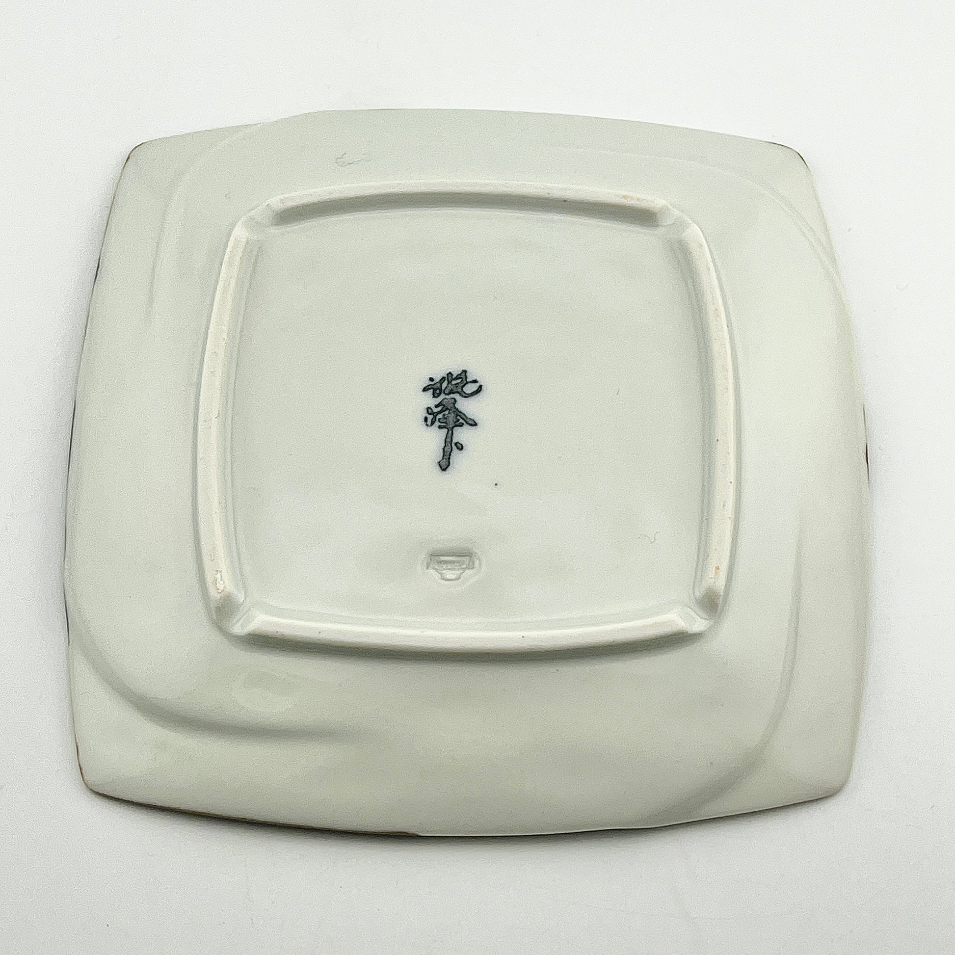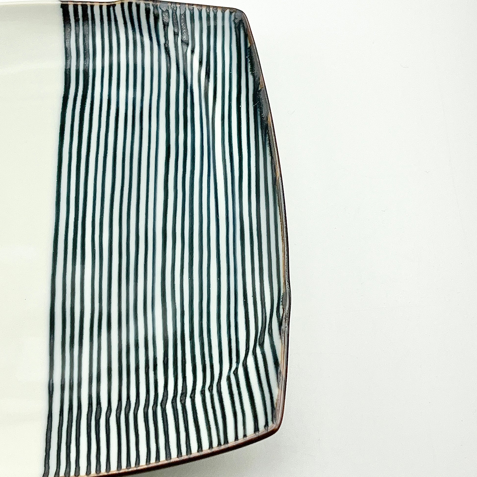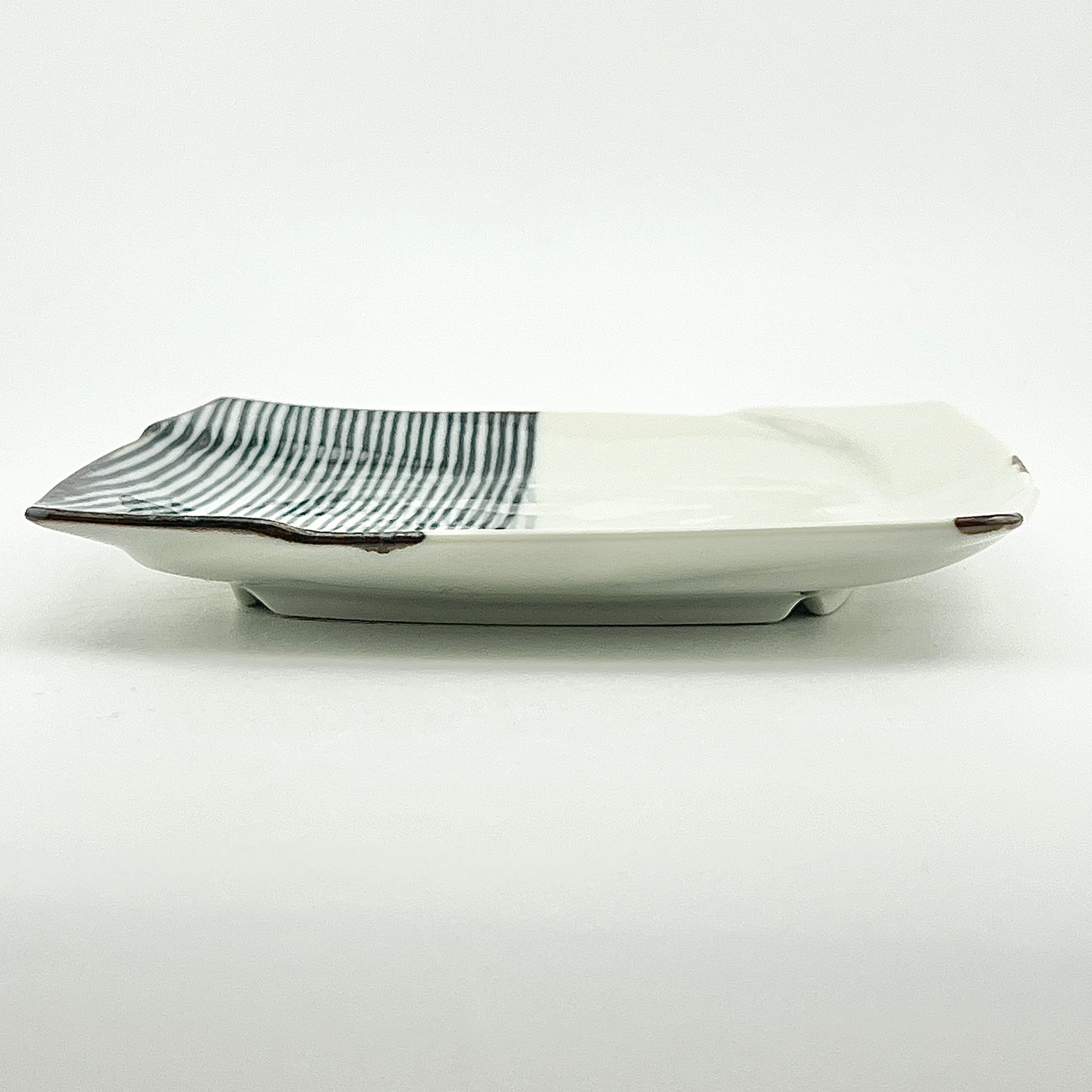手描きの細いラインが、文字通り器の片側だけに施されたシンプルな角皿です。