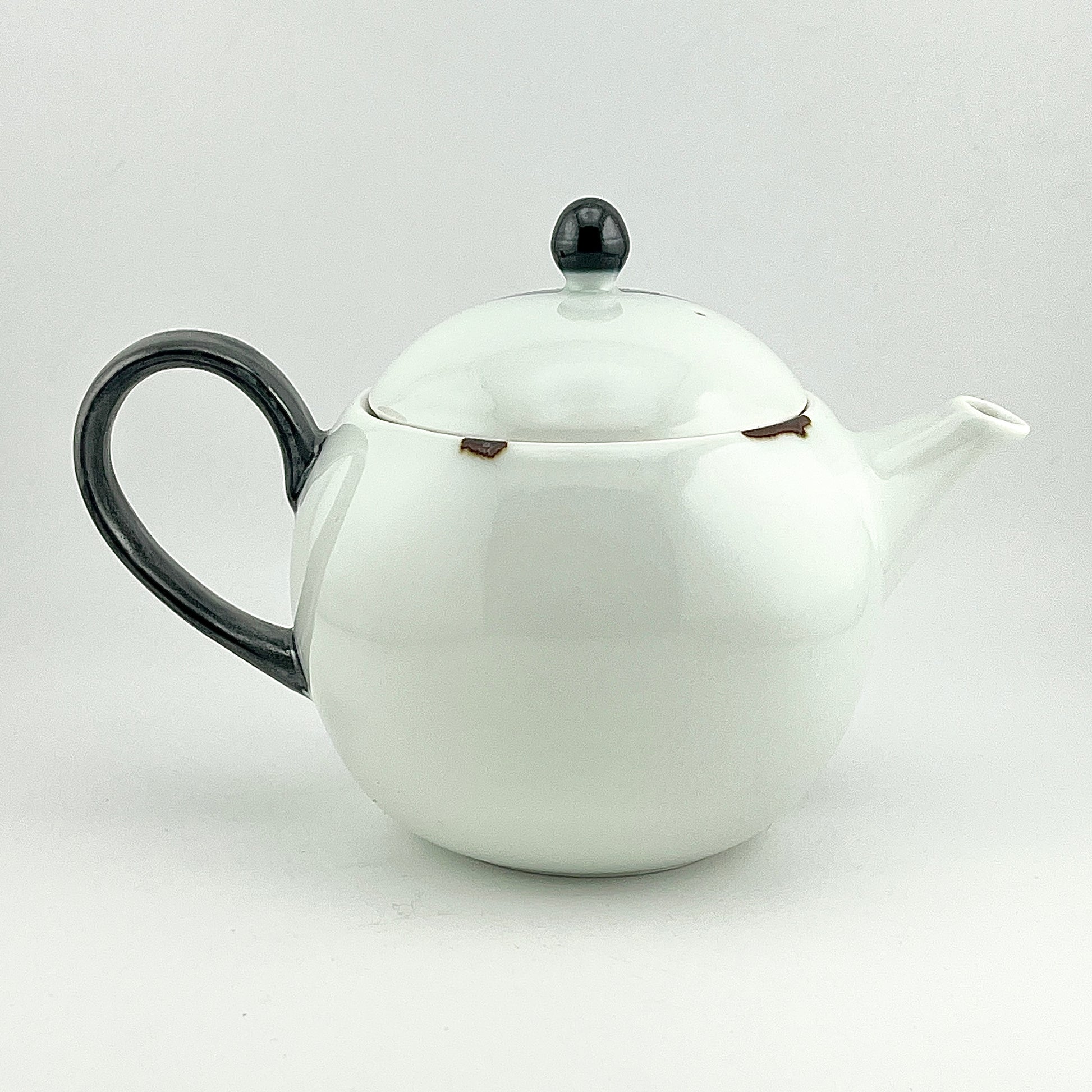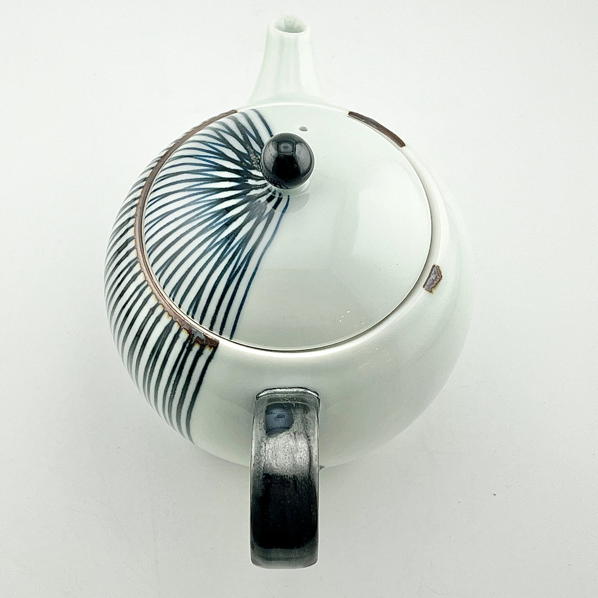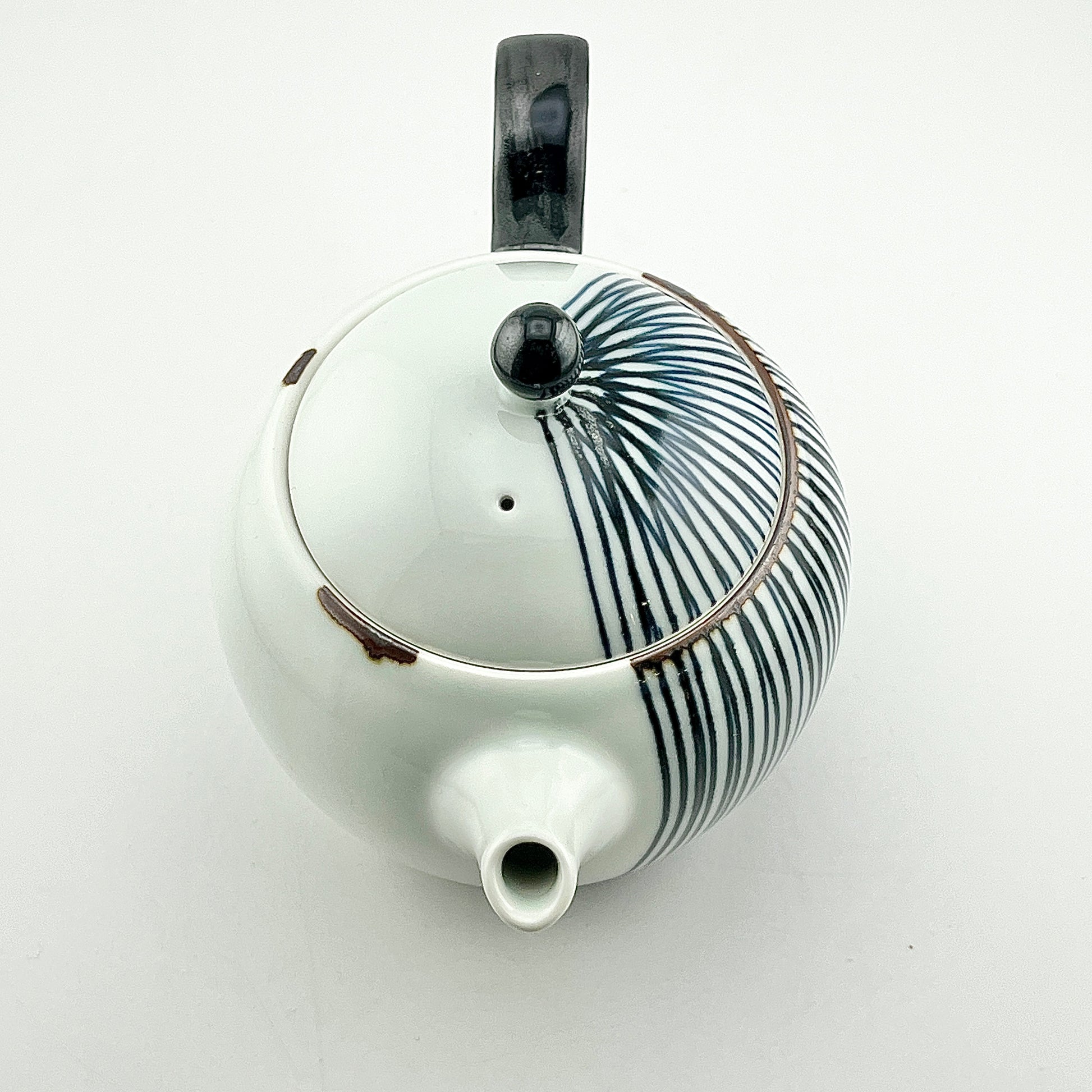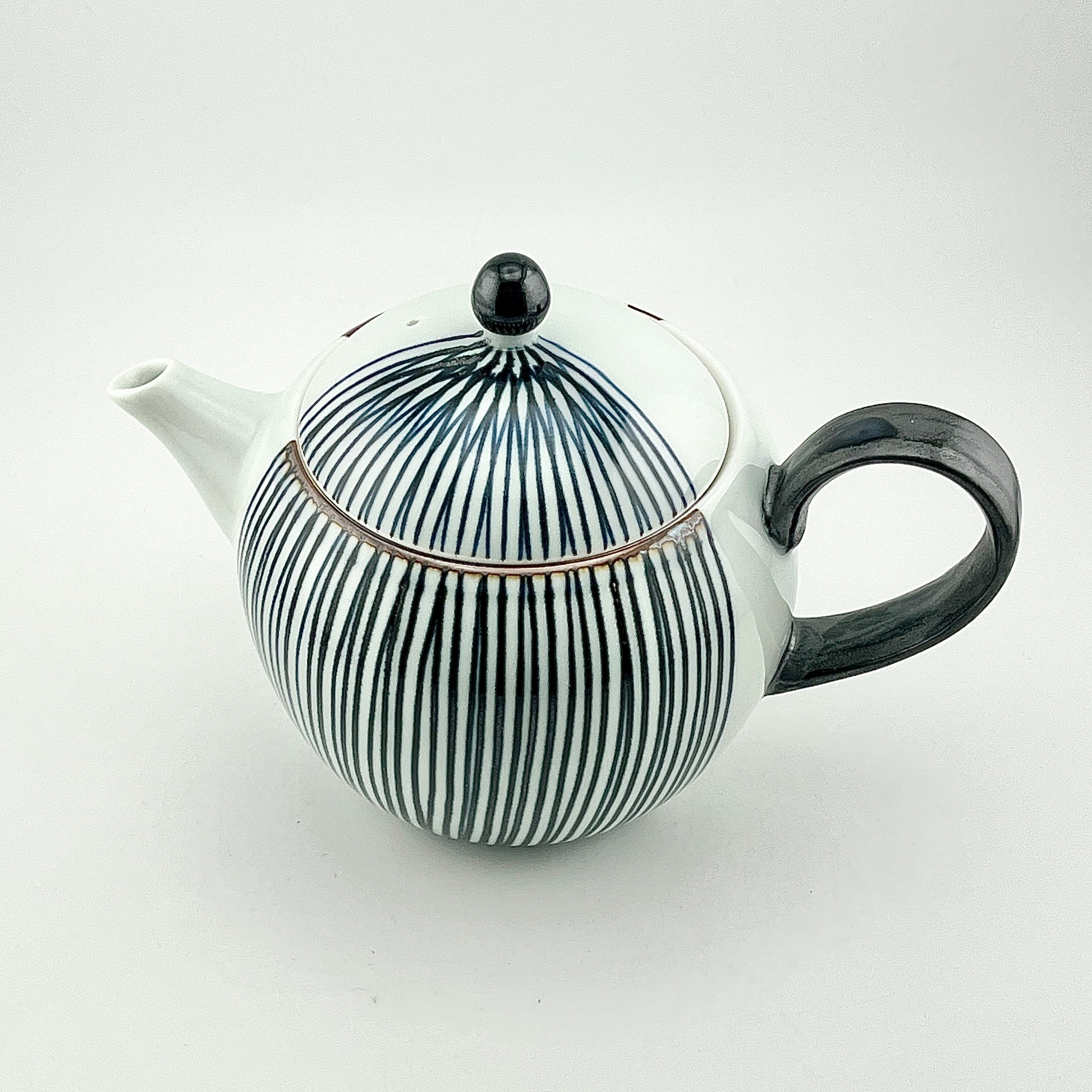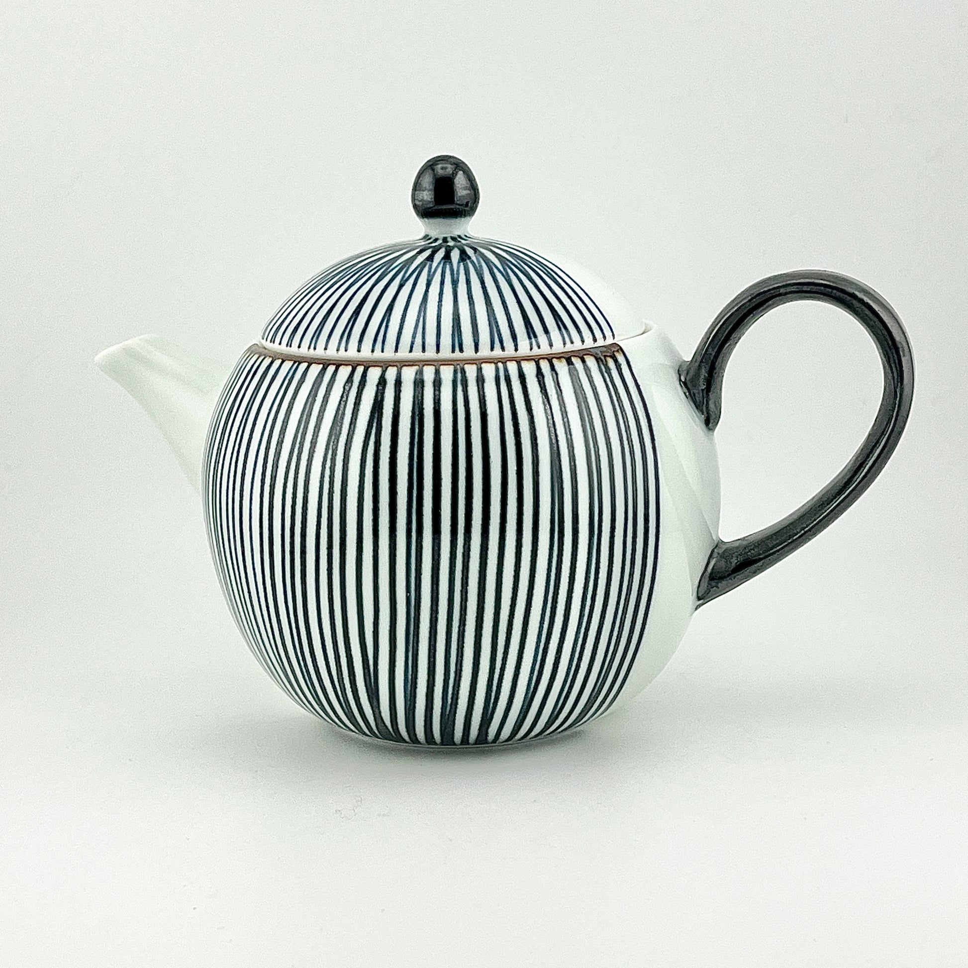 手描きの細いラインが、文字通り器の片側だけに施された丸みの有るかわいいティーポットです。