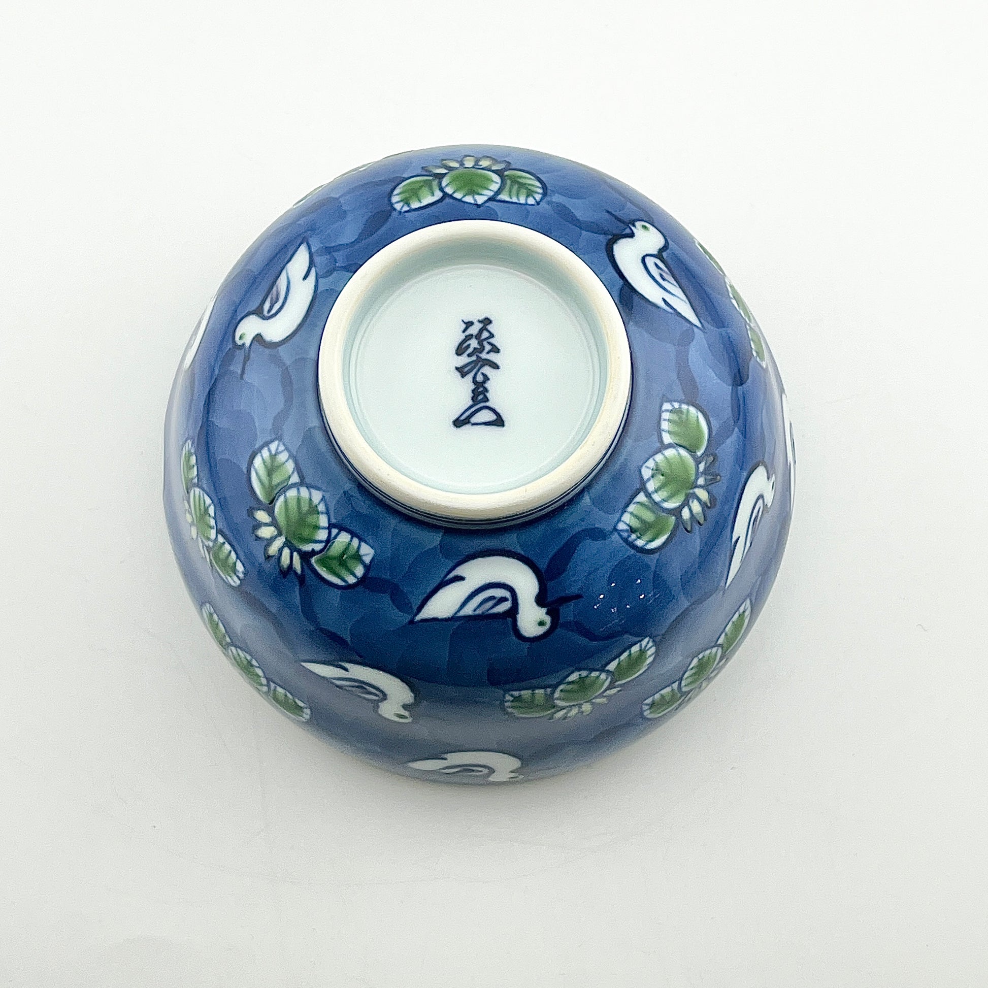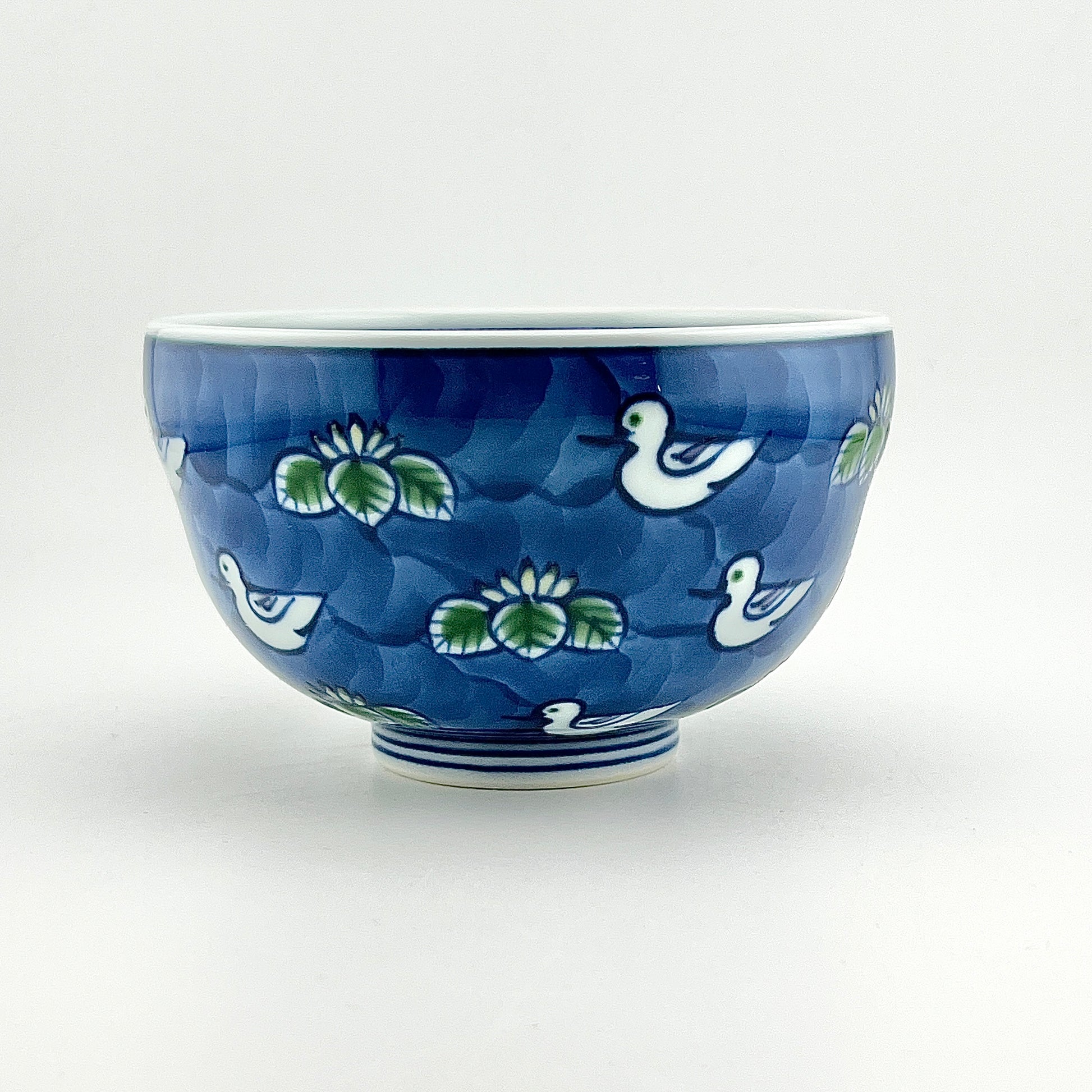 有田焼 源右衛門窯 染錦水鳥図飯碗